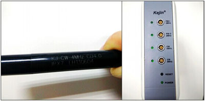 首先第一步:將探頭上的信息對應到標號一致的插口上。例如:將標有CW-4MHz信息的超聲探頭對應到CW-4MHz的插口上