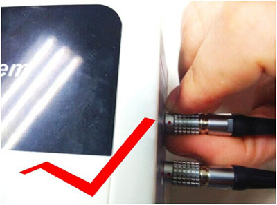 第二步:紅點對準紅點,將探頭插口輕輕按壓進去,切勿旋轉!
