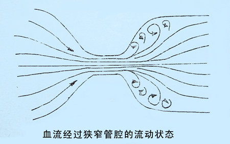 4)湍流:在病理情況下出現(xiàn)。頻窗內(nèi)出現(xiàn)的一小團高頻信號稱為湍流(如血管狹窄時的射血,心臟關閉不全時的返流)。湍流所顯示是頻譜增寬、光點疏散、頻譜包絡線毛糙的圖形,“頻窗”消失,多普勒輸出可聽到嘈雜刺耳的血流聲。